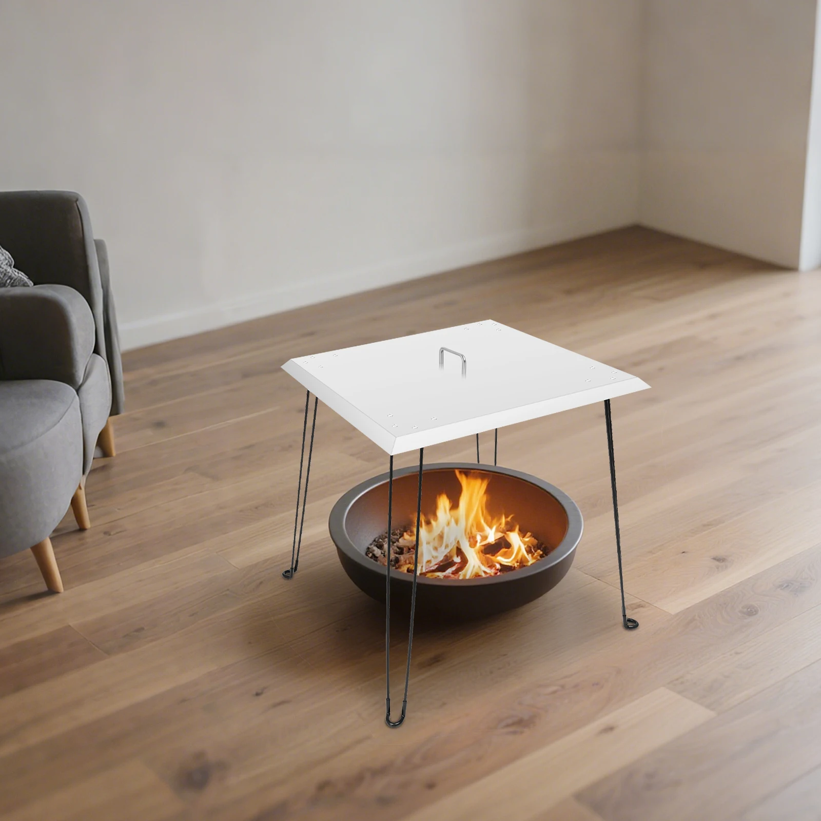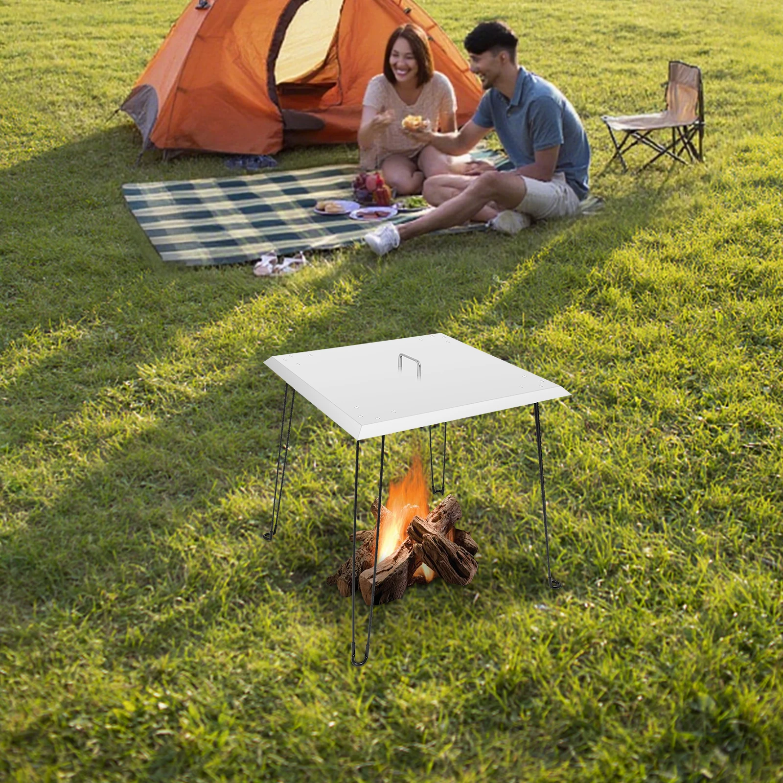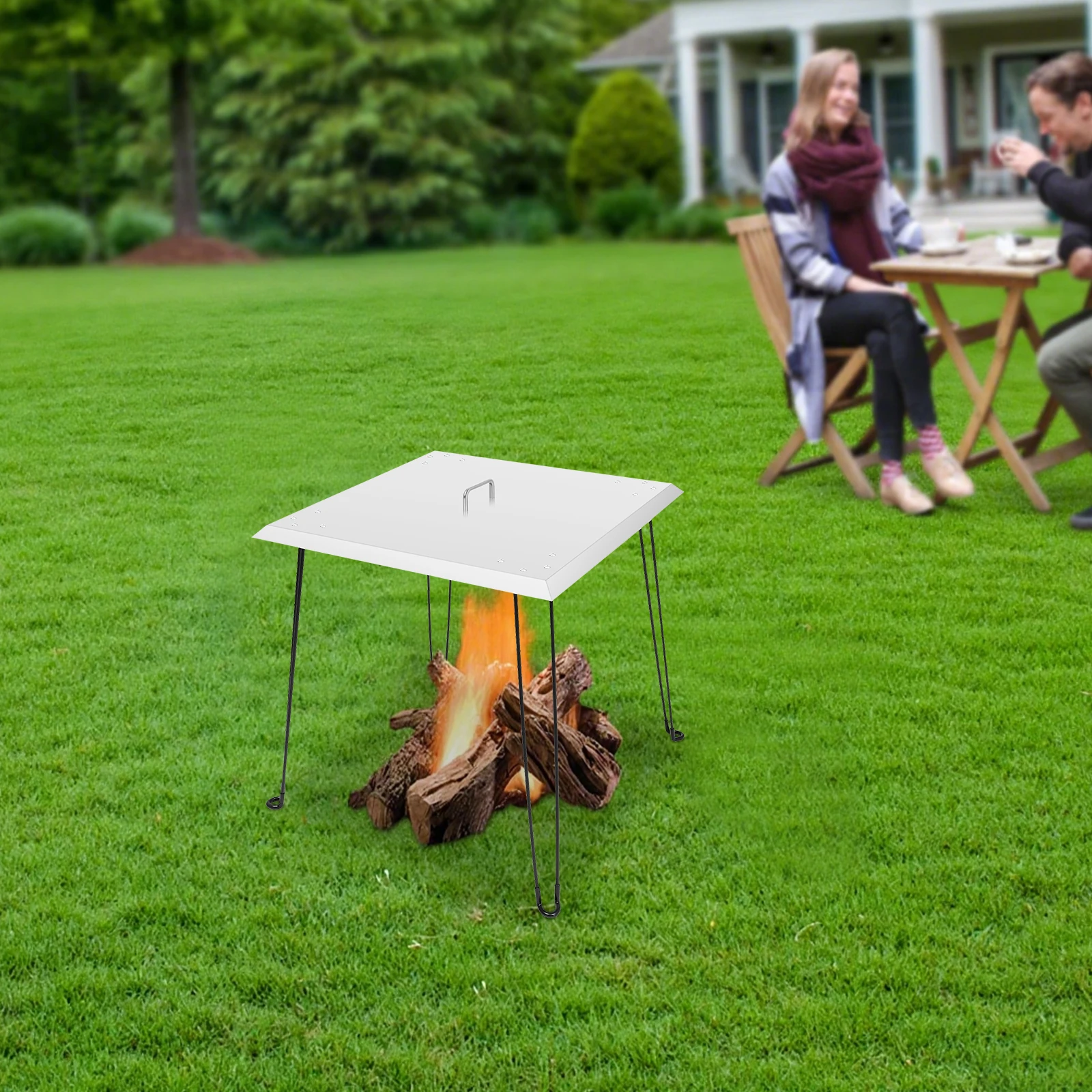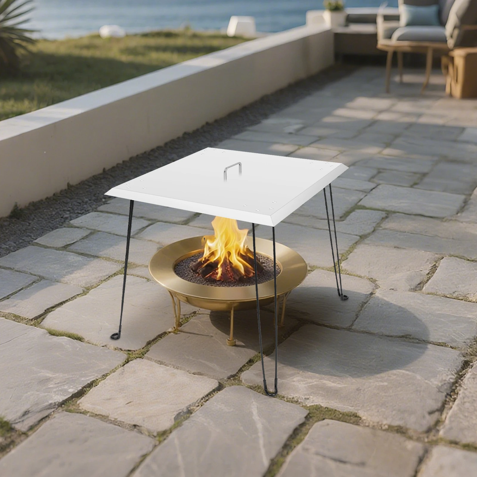 Stainless Steel Fire Pit Heat Deflector Lid, 24x24 Inch Foldable Cover with Heat Resistant Handle for Outdoor Camping Heater
