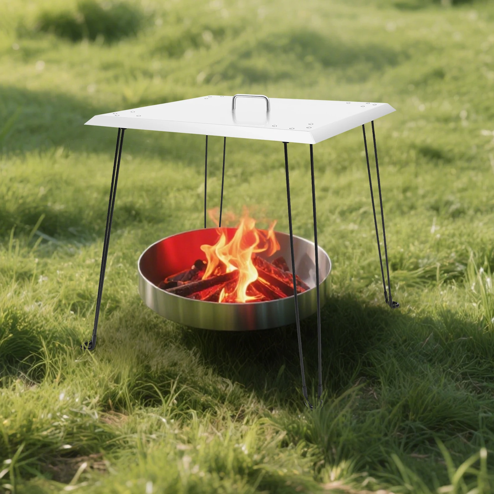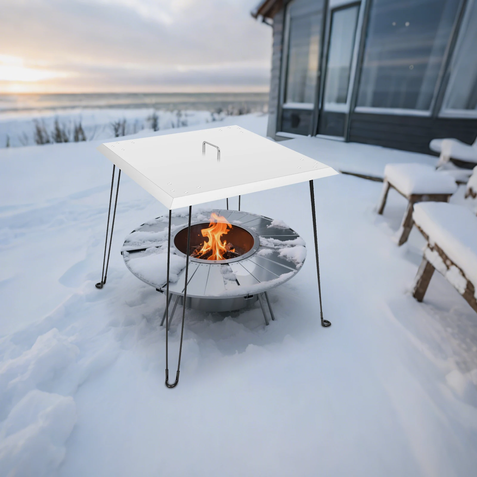 When it comes to warmth we unconsciously think of fire. Therefore an excellent fire pit heat deflector becomes very important. Our fire pit heat deflector has a wide range of service life and provides good performance in different weather with sturdy stainless steel. Many thoughtful designs, such as carrying handles, collapsible legs and rounded corners, ensure ease of use and safety. This functional lid can be used as a heater or shelter.