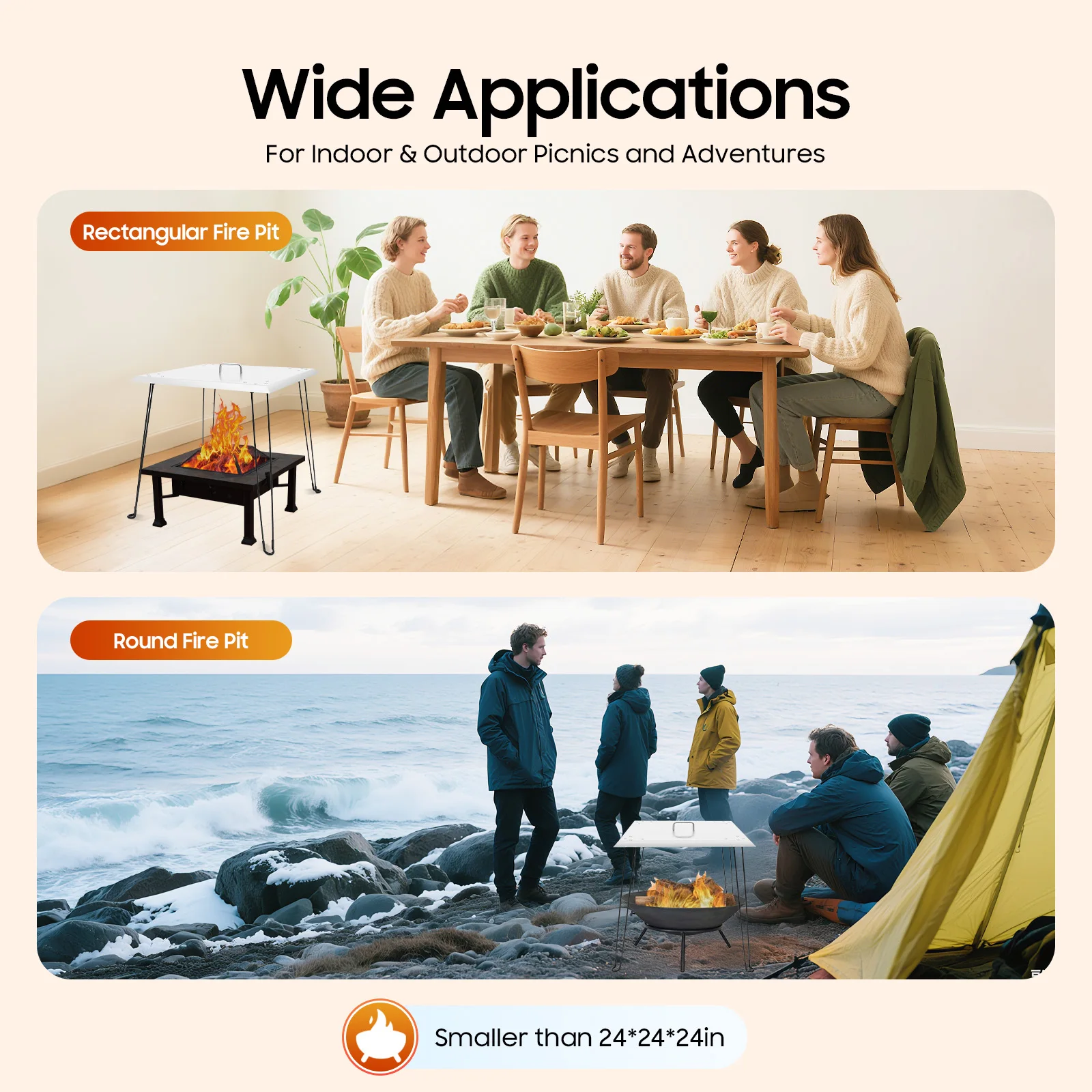 It is suitable for any round or rectangular fire pit that is smaller than 24*24*24in for indoor or outdoor picnics and adventures.