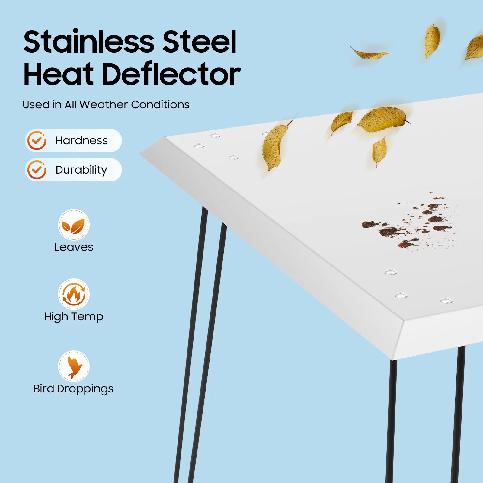 Rugged and Durable: The fire pit heat deflector is made up of high-quality stainless steel for outstanding hardness and durability. It can withstand high temperatures, will not deform easily, and is unaffected by leaves, bird droppings and other debris, allowing it to be used in all weather conditions.